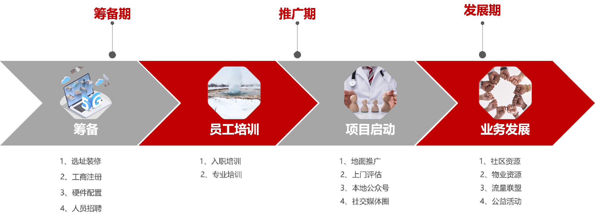 提供线上线下全方位培训,包括:运营培训、市场拓展培训、宣传推广培训、系统培训等支持