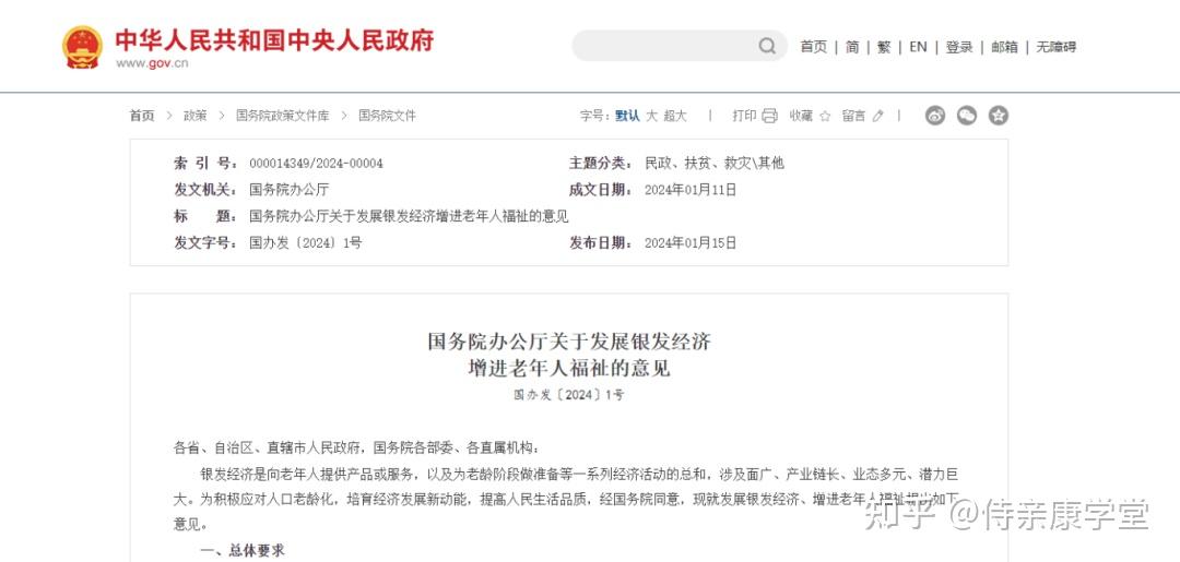 查看详情 国务院办公厅印发《关于发展银发经济增进老年人福祉的意见》,重点解决好老年人居家养老,就医用药,康养照护等急难愁盼问题,让老年人安享幸福晚年